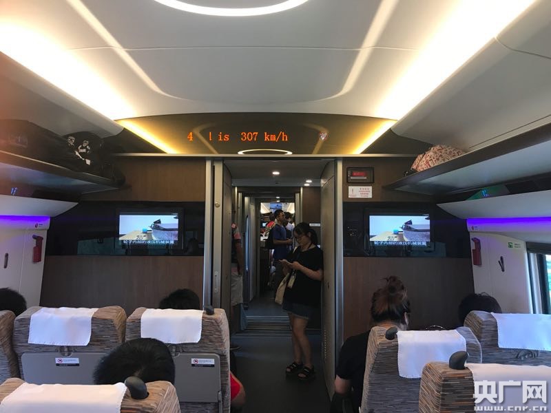 復興號的內部空間,現在列車運行時速307km/h。 -