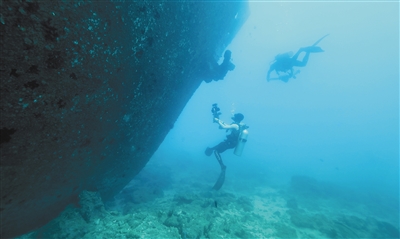 來自外地的專業潛水攝影師在分界洲島附近海域拍攝海底景觀。