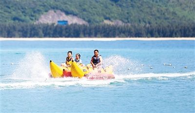 乘著摩托艇在海上乘風破浪,搭著滑翔傘騰空而起俯瞰整片海灘,這些刺激的項目讓眾多游客紛紛駐足。“這真是一座美麗的島嶼,很好玩!”來自揚州的貢正梅女士與女兒結束了摩托艇和拖傘項目后,打算到潛水節會場里,探尋有沒有自己感興趣的項目。