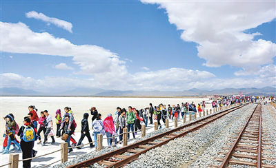 青海茶卡鹽湖暑期吸引了眾多游客。