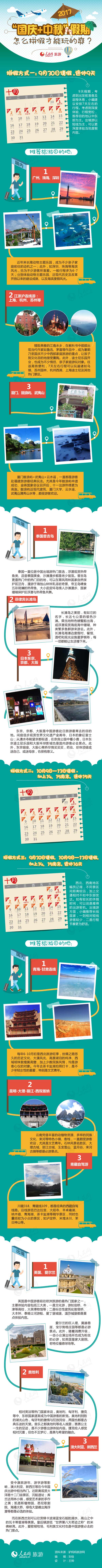 圖解:2017“國慶+中秋”假期 怎么拼假才能玩的爽?,旅游頻道根據(jù)不同的拼假方式,給還沒計劃的你準(zhǔn)備了適合的國內(nèi)游和出境游的目的地,一起來看看吧!