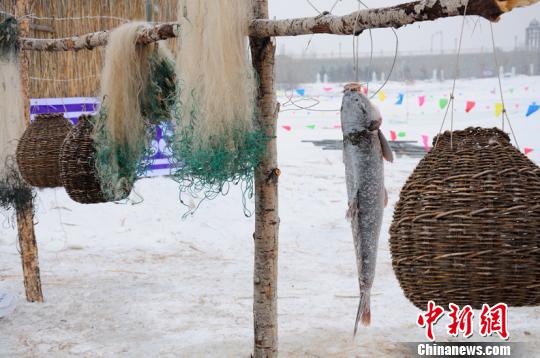 圖為冰釣現(xiàn)場(chǎng)達(dá)斡爾族人的罩魚工具 莫旗旅游局供圖