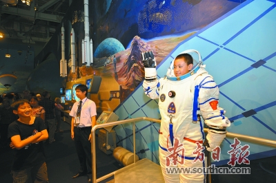 小學生在廣東科學中心體驗航天(新華社 發)