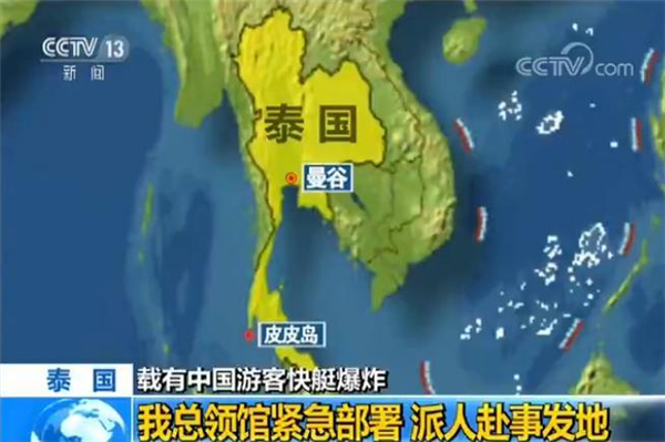 14日,泰國知名旅游景點皮皮島附近發生快艇發動機爆炸事件。事發快艇上當時共載有27名中國游客,以及數名泰國公民。經中國駐泰國宋卡總領事館確認,27名中國游客已被救上岸。中國游客都有不同程度受傷,其中5人受重傷,但都沒有生命危險。