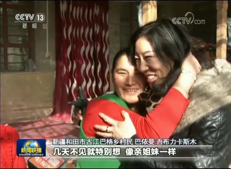 和田市古江巴格鄉村民 巴依曼·吾布力卡斯木:是的,我叫她姐姐。幾天不見就特別想,像親姐妹一樣。