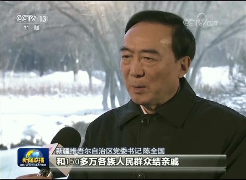 新疆維吾爾自治區黨委書記 陳全國:習近平總書記指出,民族團結是各族人民的生命線,是新疆發展進步的根本基石。我們在習近平新時代中國特色社會主義思想指引下,緊緊圍繞社會穩定和長治久安的總目標,開展民族團結一家親的活動,也就是全區100多萬干部職工和150多萬各族人民群眾結親戚,同吃同住同學習同勞動。