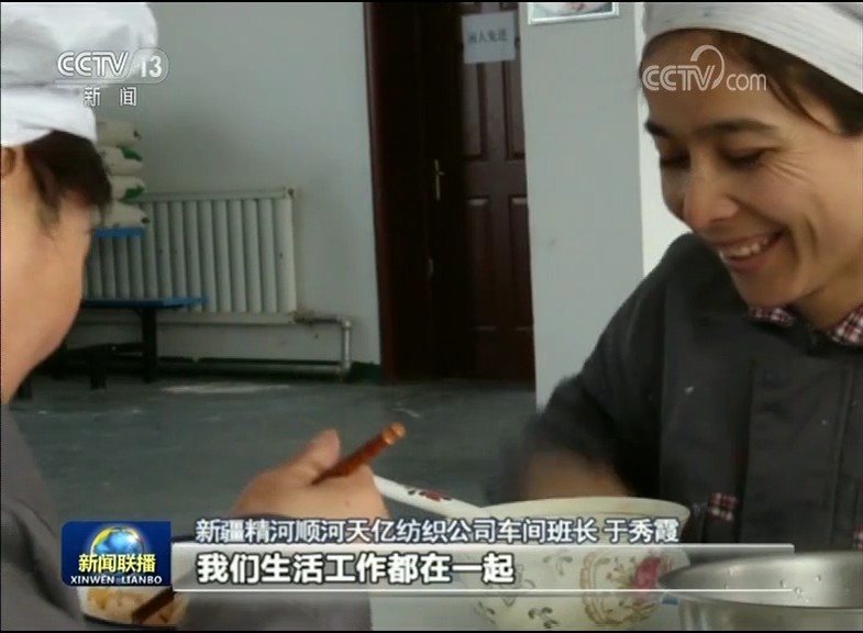 新疆維吾爾自治區精河順河天億紡織公司車間班長 于秀霞:我帶的這些工人里,有維吾爾族、蒙古族、回族、哈薩克族,我們生活工作都在一起,我作為他們大姐,有責任幫助他們,讓他們生活得更好。