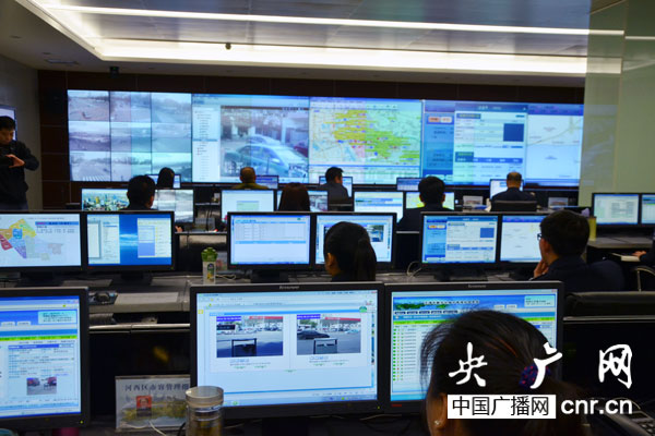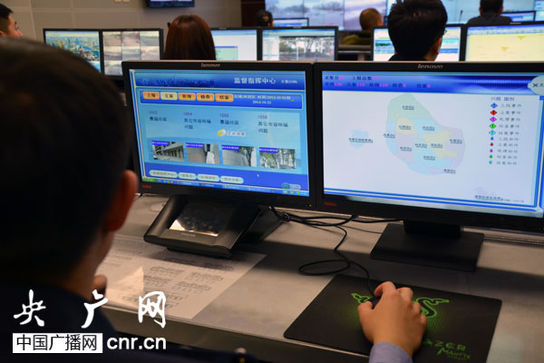 網格化管理指揮中心工作人員正在進行任務處置 央廣網記者寧靜_攝