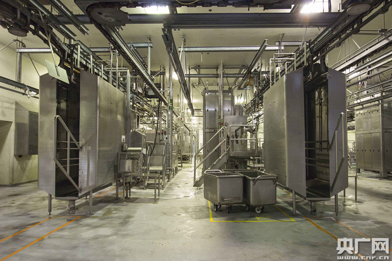 記者隨工作人員進入屠宰車間時,當日的屠宰工作剛完成不久,整個屠宰車間找不到一點殘留的肉制品痕跡,且幾乎聞不到牲畜的腥臭。負責人告訴記者,屠房內設有獨立的生化污水處理系統,每天利用細菌及其他微生物處理大約5000立方米的屠宰后污水,確保其水質與家居污水相近后才排放,符合環保標準。