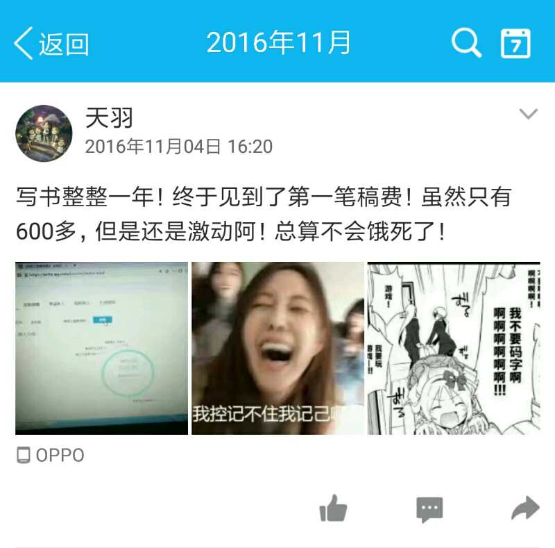 在開始寫作不久之后,天羽就已經意識到,當初試圖一夜爆富的想法“太幼稚了”。每天6000字的更新,使得他經常通宵達旦,有時候還跟室友比誰睡得更晚。每個月為了拿到全勤獎,他只能請一天假,其他時間一天都不敢歇著,所有的聚會要統統推掉,但到了月底,頂多就能拿上1500元。