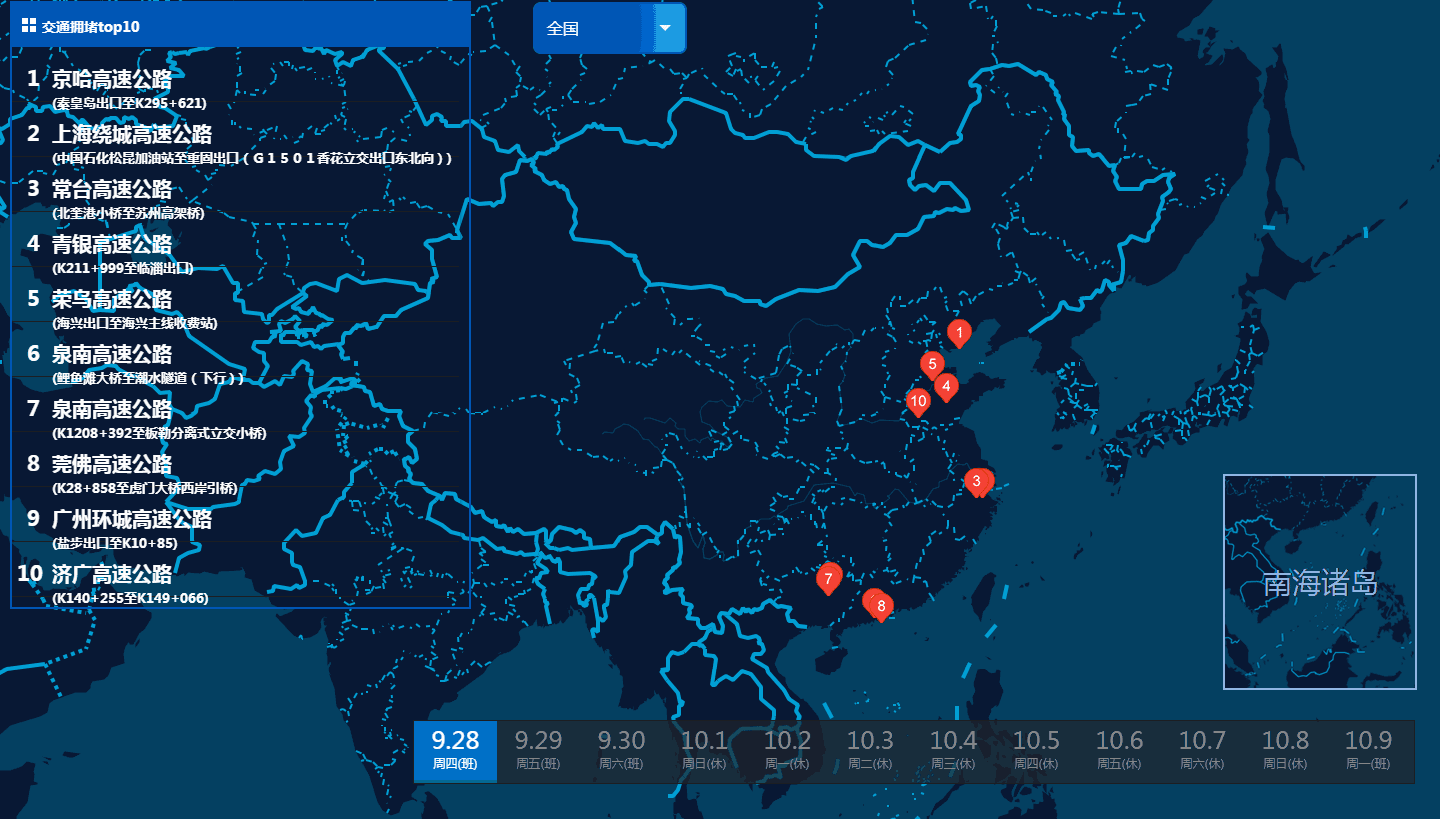 10月1日,全國范圍內易疲勞駕駛路線top 10 主要集中在廣東省、江蘇省、北京市。廣東省的廣州-清遠、廣州-韶關路線、江蘇省的無錫-安徽線是最易疲勞駕駛的路線,提醒十一途經這些路線的駕駛司機,如遇服務區,盡量休息一會,避免疲勞駕駛。