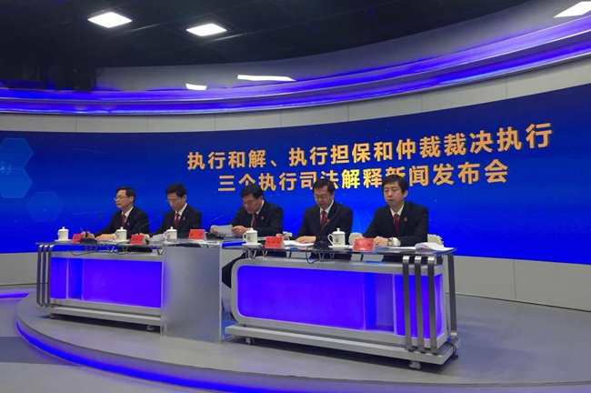 央廣網北京2月23日消息(記者孫瑩 高藝寧) 23日,最高人民法院發布《關于執行和解若干問題的規定》(以下簡稱《執行和解規定》)、《關于執行擔保若干問題的規定》(以下簡稱《執行擔保規定》)和《關于人民法院辦理仲裁裁決執行案件若干問題的規定》(以下簡稱《仲裁裁決執行規定》)三項司法解釋。記者在發布會現場了解到,這三項司法解釋作為執行規范體系的重要組成部分,將于2018年3月1日開始施行。