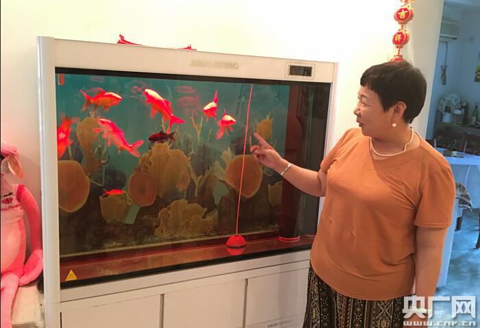 家住北京大興區佳和園新區張秀麗告訴記者,使用此前的井水養魚,魚缸上總有一道道明顯的水垢的痕跡,且魚也不容易成活。去年用上“南水”后,直接將自來水加入魚缸,不僅魚缸上不見水垢痕跡,養的魚也都活動得很歡實。央廣網記者王晶 攝