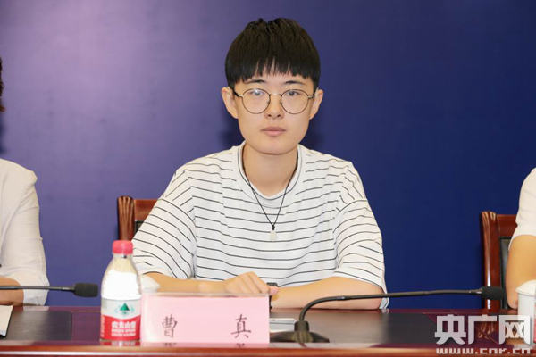 曹真在“我來北京上大學”殘疾大學生座談會上。(央廣網記者王晶 攝)