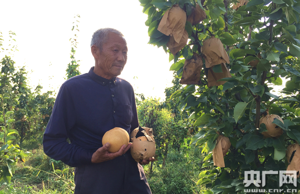 村民杜永順正在打理梨園公社的果樹。(央廣網記者 王文偉 攝)