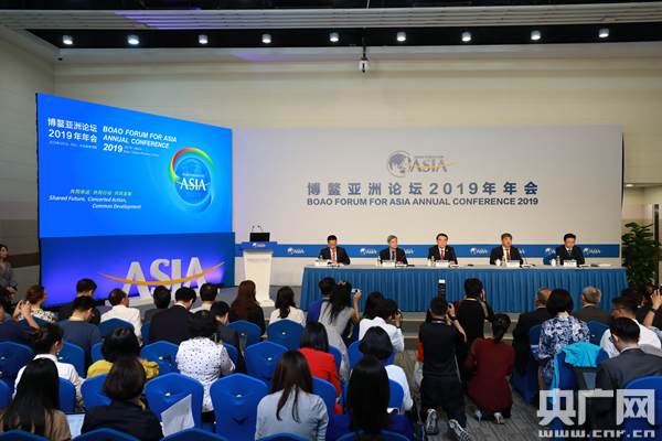 26日上午,新聞發布會發布了博鰲亞洲論壇四大學術報告。(央廣網記者 張凱航 攝)