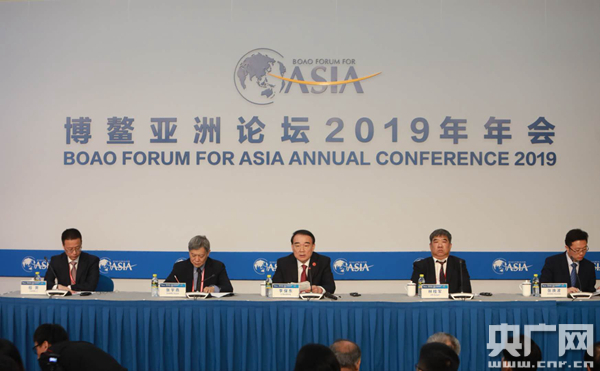 26日上午,博鰲亞洲論壇 2019 年年會新聞發布會暨旗艦報告發布會舉行。(央廣網記者 張凱航 攝)