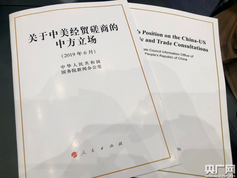 《關于中美經貿磋商的中方立場》白皮書發布。(央廣網記者 高藝寧 攝)