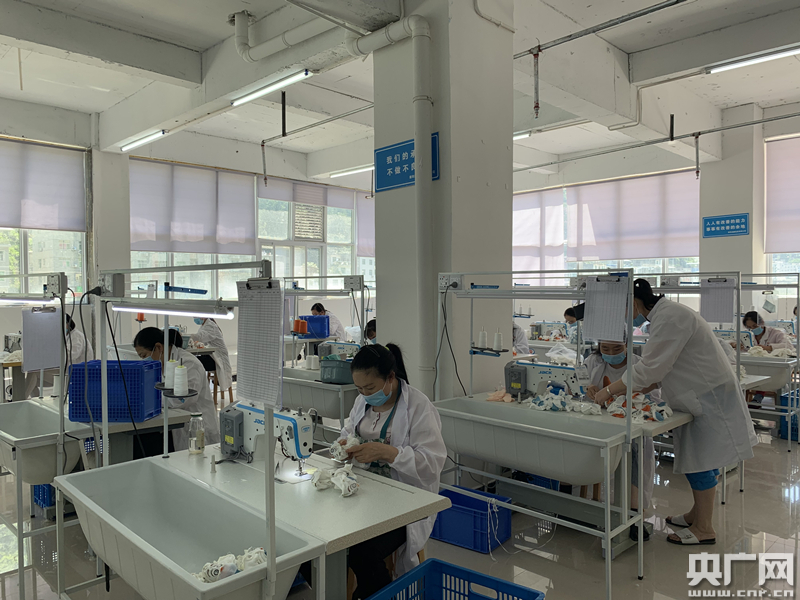 7月5日,紫陽縣迪鑫玩具工廠內,工人正在縫制玩具。(央廣網記者孫冰潔 攝)