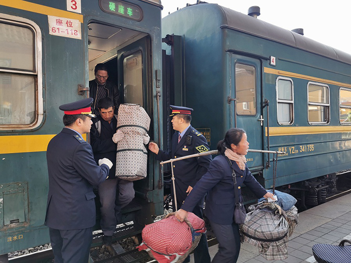 據承德車務段新杖子站長崔靖宇介紹,該站點一年四季都有“大筐隊”旅客乘車進城,每天有百十來人。工作人員和老鄉們都很熟悉,會盡可能地幫助他們,如遇到列車運行圖調整列車車次時間,他們會第一時間告訴村干部,通知到老鄉;平時加強安全宣傳,還會為“大筐隊”開辟綠色通道,把貨運到離上車最近的地方;車站還會積極跟調度部門溝通,在調整運行圖時科學設置攜帶行李較多的“大筐隊”上下車的時間。