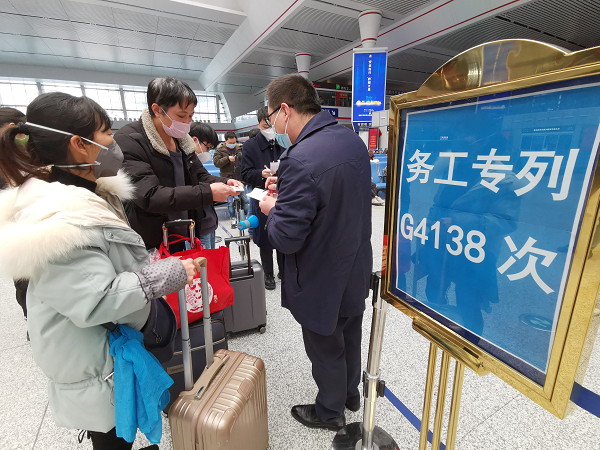 央廣網(wǎng)北京2月16日消息(記者王晶)記者從中國鐵路上海局集團(tuán)有限公司獲悉,今天(16日)13時(shí)57分,載有近300名貴州籍旅客的G4138次列車從貴陽北站開出,將于當(dāng)日22時(shí)07分到達(dá)杭州東站。這是鐵路部門節(jié)后開行的服務(wù)企業(yè)外地員工返程的首趟復(fù)工人員定制專列。