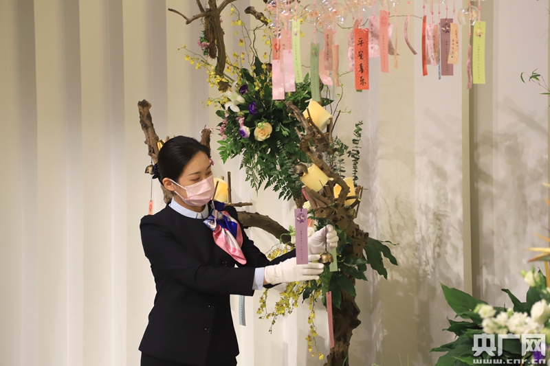 “云”代祭追思活動中,工作人員掛上祝福鈴鐺(央廣網記者 張佳琪 攝)