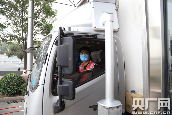 準備進入新發地市場的貨車司機正在進行體溫監測(央廣網記者 張佳琪攝)
