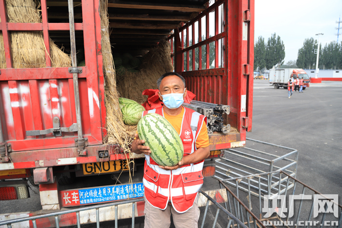 新發地市場復市首日,售賣西瓜的商戶早早來到了市場內(央廣網記者 張佳琪攝)