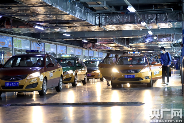 多家出租車公司調(diào)派了600輛出租車,對(duì)8日晚間的返京大客流進(jìn)行保障運(yùn)輸(央廣網(wǎng)記者 張佳琪 攝)