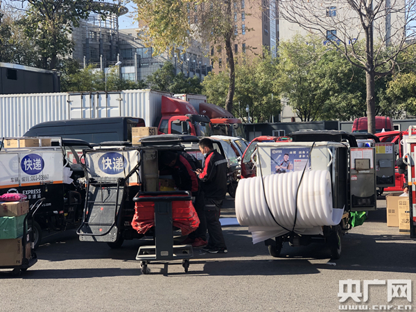 央廣網北京11月10日消息(記者王晶)“預計明天5點半前,我們就上崗了,比平日提前不少,下班也要比平時延長約一個小時。”站在北京西城區新街口的快遞園內,接受記者采訪的中通快遞員張延江電話不斷,臨近“雙11”,他需要做的準備不少,也包括對眼前這輛和他并肩作戰的“三輪車”進行維修。