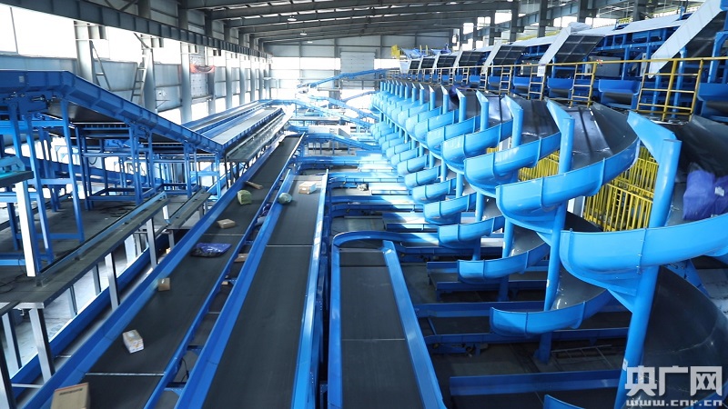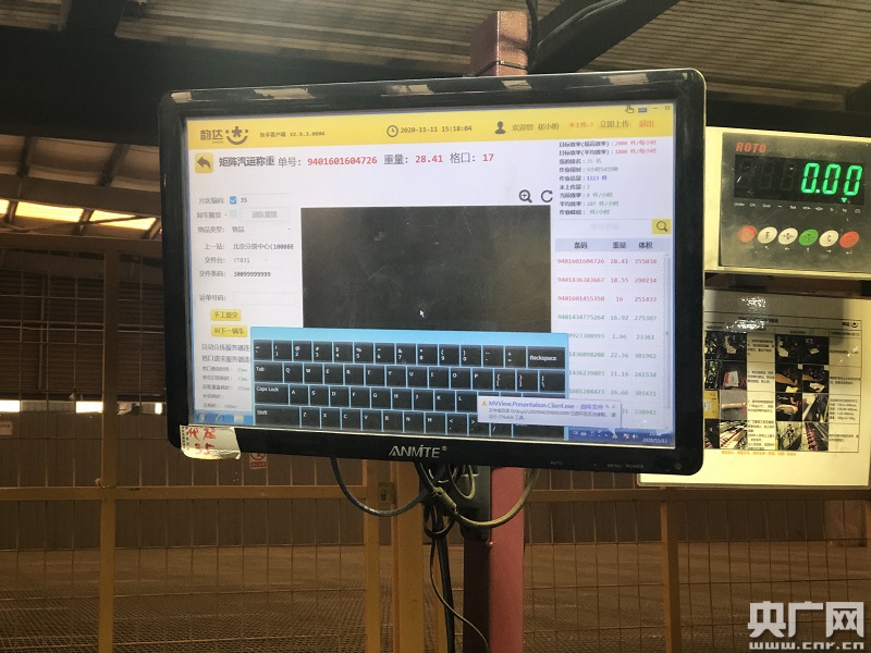 11月11日,中通快遞京南轉運中心(涿州),該中心自動分揀設備分為上下兩層,自動化分揀設備的單線體規模為亞洲最大(央廣網記者 黃一博 攝)