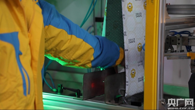 視覺掃描設備,也被稱為“狂掃機”,可自動采集條碼信息,提高商品出庫速度(央廣網記者 王晶 攝)