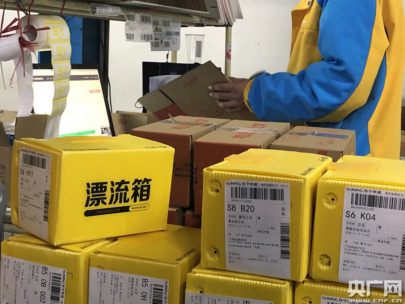 11月11日,蘇寧通州物流基地,這種料箱可代替紙箱裝載消費者購買的商品,滿足快遞綠色化的要求(央廣網記者 黃一博 攝)