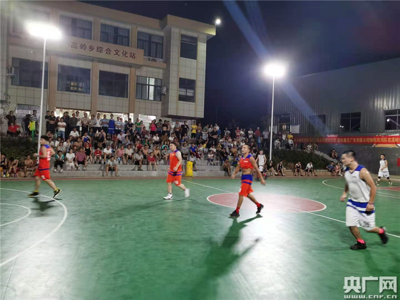 夜幕燈光下的高嶺鄉“村級籃球聯賽” 。(央廣網發 高嶺鄉文化站供圖)