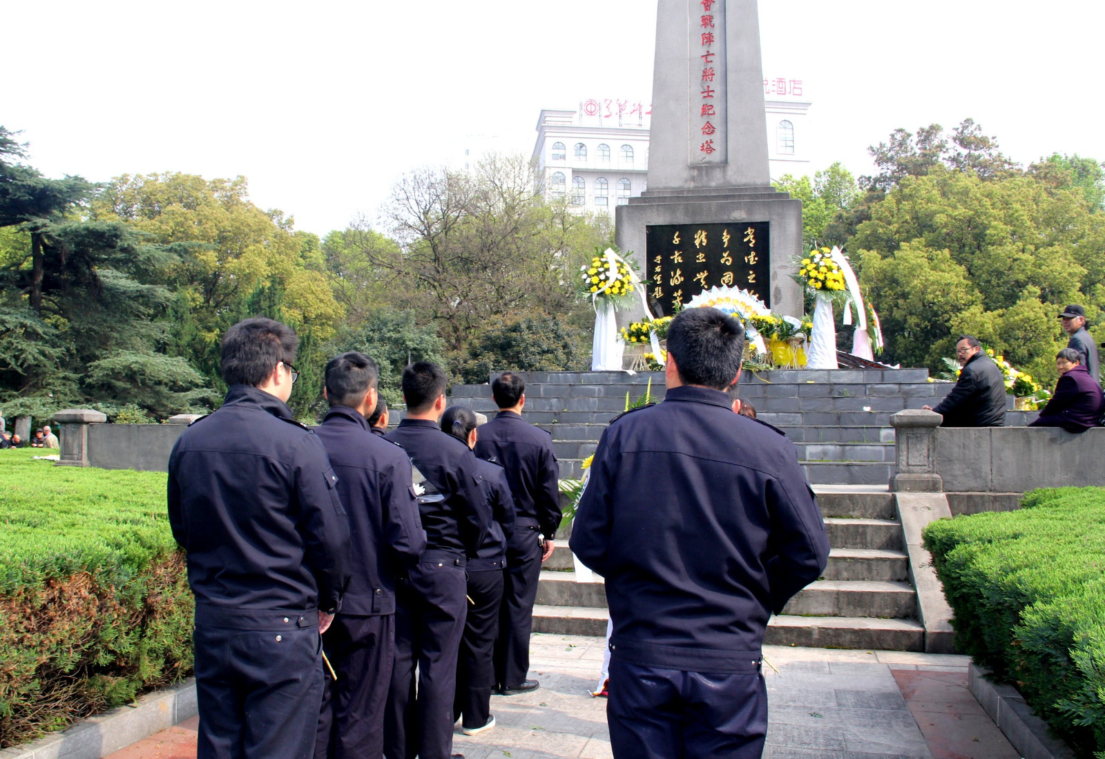 向烈士獻花籃 參加活動的民警、協警們懷著無比崇高的敬意向為祖國、為人民、為常德這座城市在抗戰期間貢獻生命的英烈們鞠躬,獻花藍,并默哀一分鐘。在紀念碑下,副大隊長楊軍輝向大家講述了抗戰中常德會戰的重要意義和以身殉職革命先烈們的英雄事跡,號召大家一定要繼承先烈遺志,學習他們不畏艱險、勇往直前的敢戰精神;學習他們熱愛和平,忠于人民、忠于國家的犧牲精神,并把這種精神以飽滿的政治熱情投入到自己當前從事的公安交管工作中去,同時也要珍惜革命先烈用鮮血和生命換來安定與祥和的社會、立足本職,扎實工作,為保一方暢安貢獻自己的力量。 -