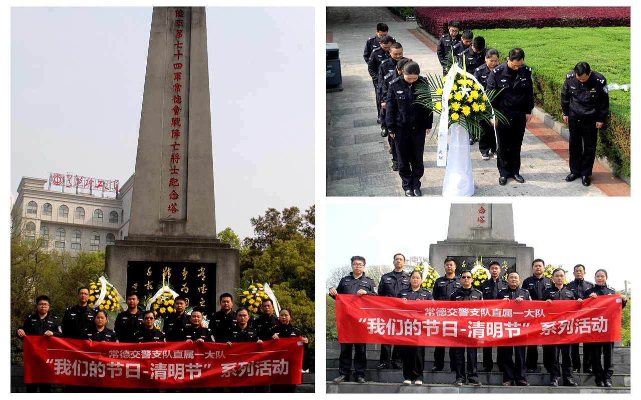 祭奠抗戰英烈 央廣網長沙4月1日消息(記者鄧文輝 通訊員劉小滿)在清明節到來之際,為緬懷“常德會戰”抗戰英烈,弘揚正氣,激勵斗志,進一步增強公安民警的榮譽感、使命感和責任感,3月31日下午,湖南常德交警支隊直屬一大隊部分民警、協警在副大隊長楊軍輝的帶領下前往“常德會戰”烈士陵園, 開展“我們的節日-清明節”主題活動,向長眠在家鄉的抗戰先烈敬獻花籃,表達哀思與敬意。 -