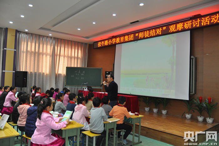 河南鄭州伏牛路小學教育集團開展“師徒結對”觀摩研討活動 央廣網鄭州4月5日消息(記者李凡 通訊員李霏)四月的鄭州,草長鶯飛,中原區的伏牛路小學教育集團迎來了一次有意義的教研活動,今天(5日)上午,在伏牛路小學多媒體教室開展了“師徒結對”觀摩研討活動。來自伏牛教育集團鄭上路小學的沙園園主任和王晶晶老師以及伏牛路小學的部分語文教師參與了此次活動。 -