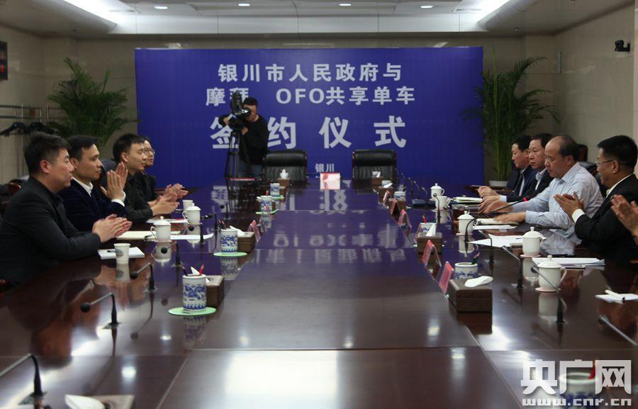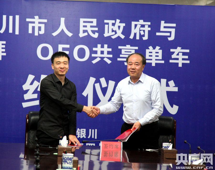 •   簽約   為深入推進銀川市“兩宜兩化”城市建設,真正依靠“科技+互聯網”的智慧城市建設,推動低碳、綠色、便捷的出行方式,以“騎行改變城市”,經銀川市政府常務會決定引進的共享單車為北京摩拜科技有限公司的摩拜單車和北京拜克洛克科技有限公司的OFO單車。