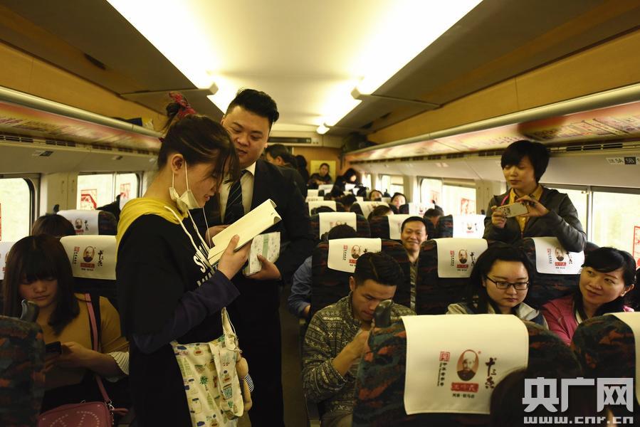 武漢客運段:列車書香分享行進之美 武漢客運段城際動車組車間黨總支書記姜沛介紹,孝感是董永七仙女故事發生地,在孝感這個地方有很多孝順感人的故事,武孝城際開行時,武漢客運段結合這個主題,打造孝文化,開展文化之旅,創建書香列車,提倡旅客在行進中閱讀,品味寫意之旅。 -