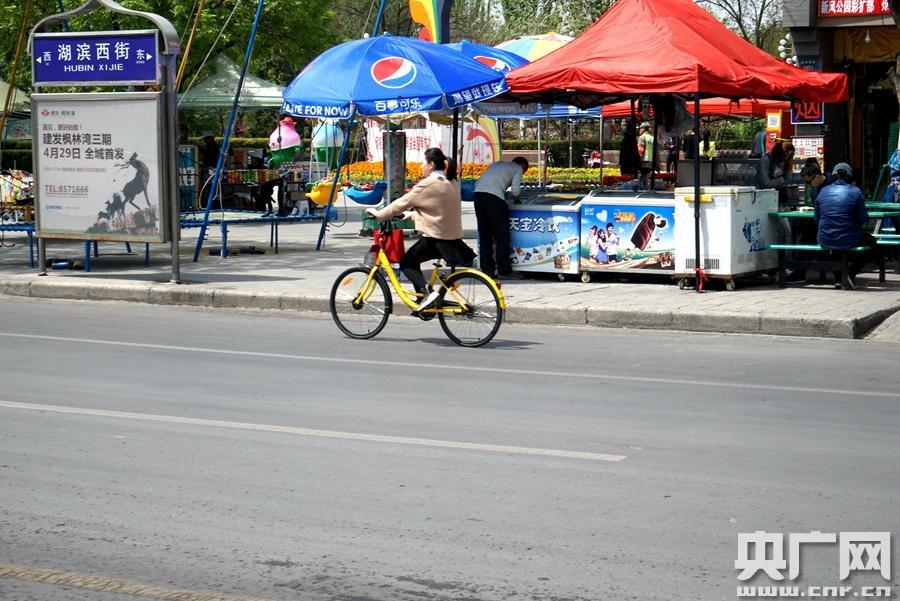 •   市民騎行(央廣網實習記者靳樹言 攝)     4月13日,銀川市政府和北京摩拜科技有限公司和北京拜克洛克科技有限公司簽定合作協議,引進摩拜和OFO兩家共享單車投放銀川三區及濱河新區。