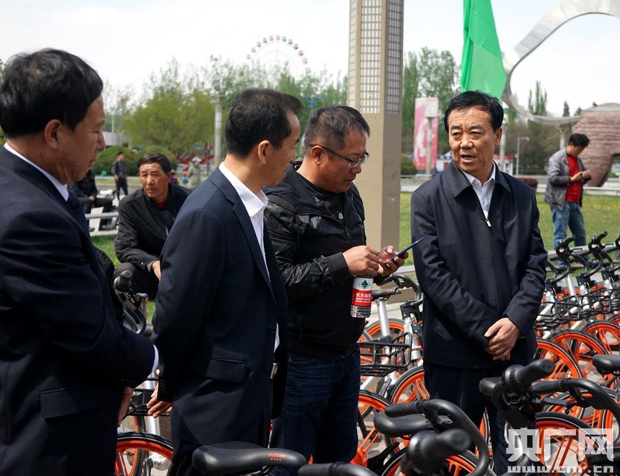 •   銀川市長白尚成(右一)了解共享單車情況(央廣網實習記者靳樹言 攝)   根據合作協議,兩家企業將分三期,在今年6月底之前投放3萬輛共享單車,滿足市民的低碳出行需求。