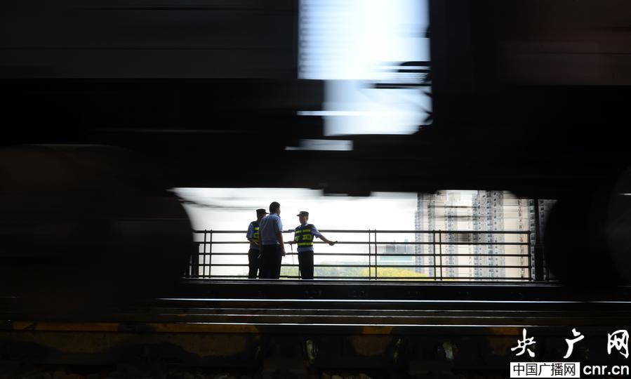 民警每天巡查鐵路線路,確保大橋安全。(央廣網發 趙軍 攝)