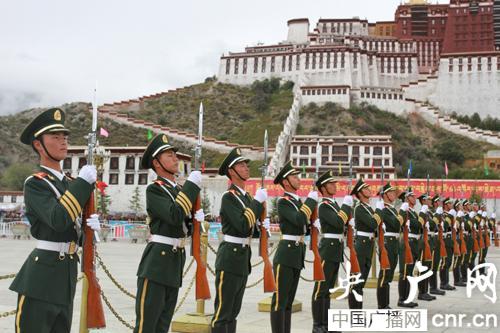 央廣網拉薩10月1日消息(記者羅布次仁) 今天上午,3000多名身著節日盛裝的西藏各族各界群眾聚集在布達拉宮廣場,舉行升國旗唱國歌儀式慶祝偉大祖國64華誕。