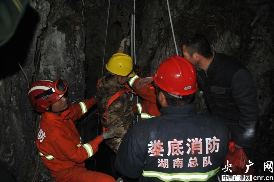 湖南漣源14人尋水困在300余米深山洞 今天凌晨成功脫險(央廣網(wǎng)發(fā) 張毛清 攝)