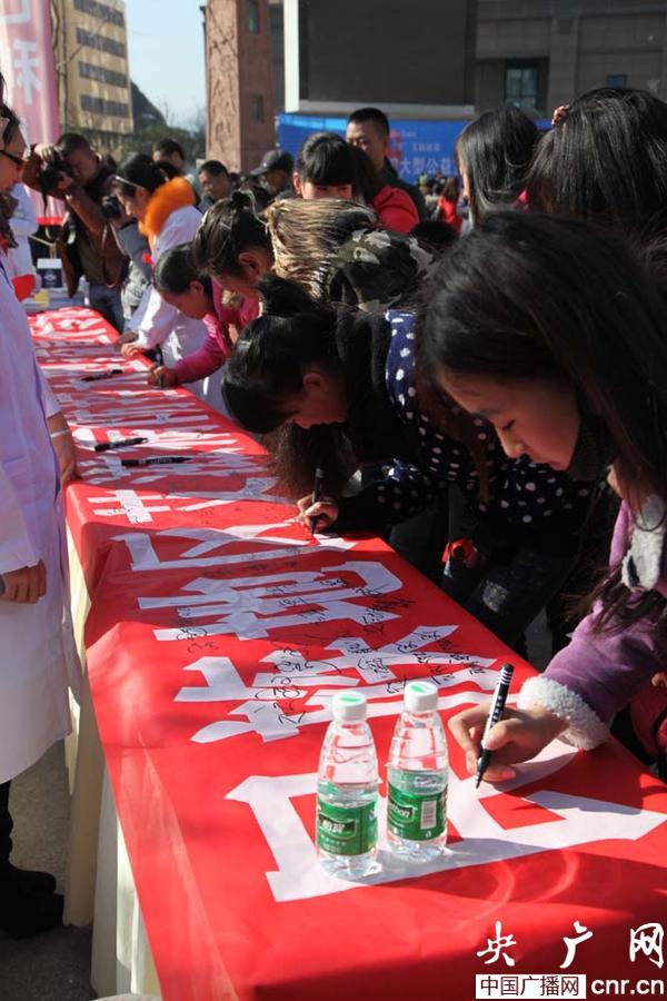 “民族地區艾滋病防控大型公益宣傳”簽名活動現場(央廣網記者 賈宜超 攝)