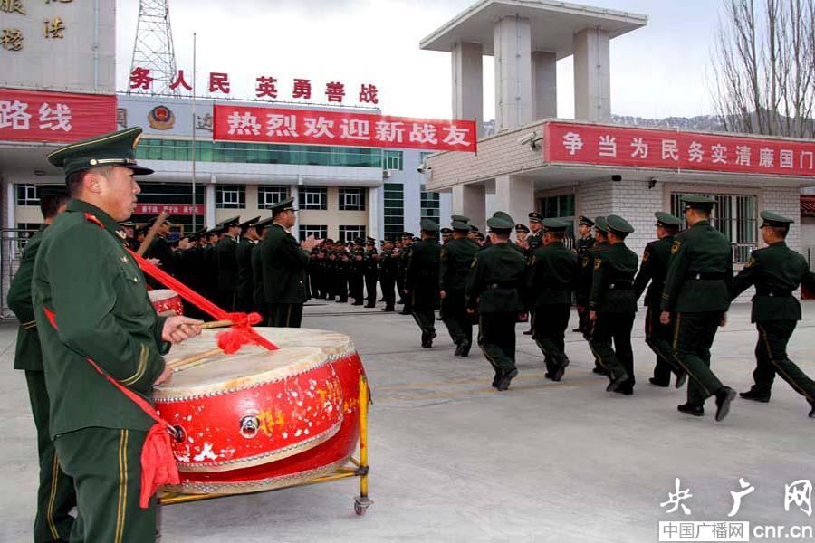 央廣網塔什庫爾干12月9日消息(記者張雷 通訊員唐乾清)昨天下午,位于帕米爾高原上的新疆紅其拉甫邊檢站營區內鑼鼓喧天,全體官兵整齊列隊,剛剛結束新訓的12名新兵邁著整齊的步伐,喊著響亮的番號走進營區,列隊等候的官兵用最熱烈的掌聲歡迎新戰友的到來。