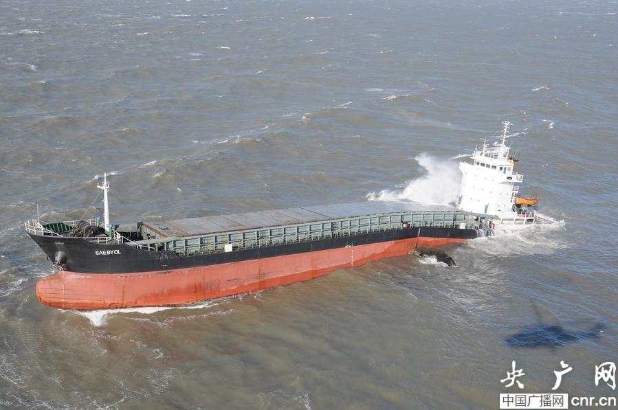 大連海貓島水域“光明”輪觸礁 15名朝鮮籍船員全部獲救(央廣網發 謝元蕾攝)