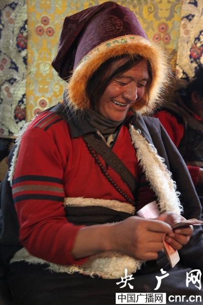冬季的石渠寒風(fēng)刺骨,氣溫已降至零下二十幾度,但在這風(fēng)雪的扎溪卡草原上,到處是一片歡聲笑語。在起塢鄉(xiāng)發(fā)放點,起塢鄉(xiāng)覺悟二村村民洛燈今年一家領(lǐng)取了20340元草補金,他十分激動的對記者說,黨的政策太好了,草補金的及時發(fā)放給他們的生產(chǎn)、生活提供了保障。