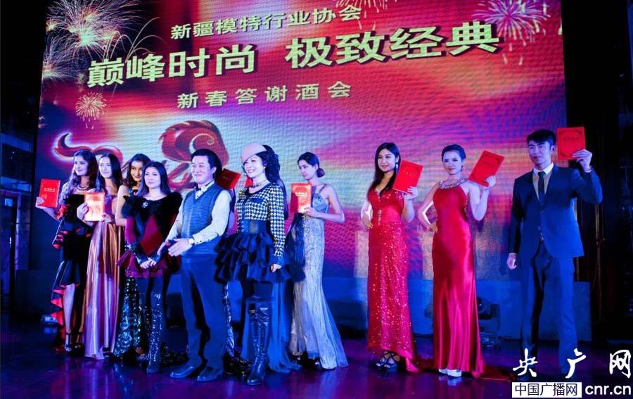 央廣網烏魯木齊1月2日消息(記者張雷 通訊員孟楊)新疆模特行業協會元旦前夕在烏魯木齊舉行“巔峰時尚、極致經典”迎新春年會,現場對2013年度獲得國際、國內大獎表現優秀的新疆10位年度最佳模特進行了表彰,同時特別成立了由9名新疆攝影界一流攝影師組成的新疆模特時尚攝影專家團,第二屆亞歐國際形象大使全球總決賽同時啟動。