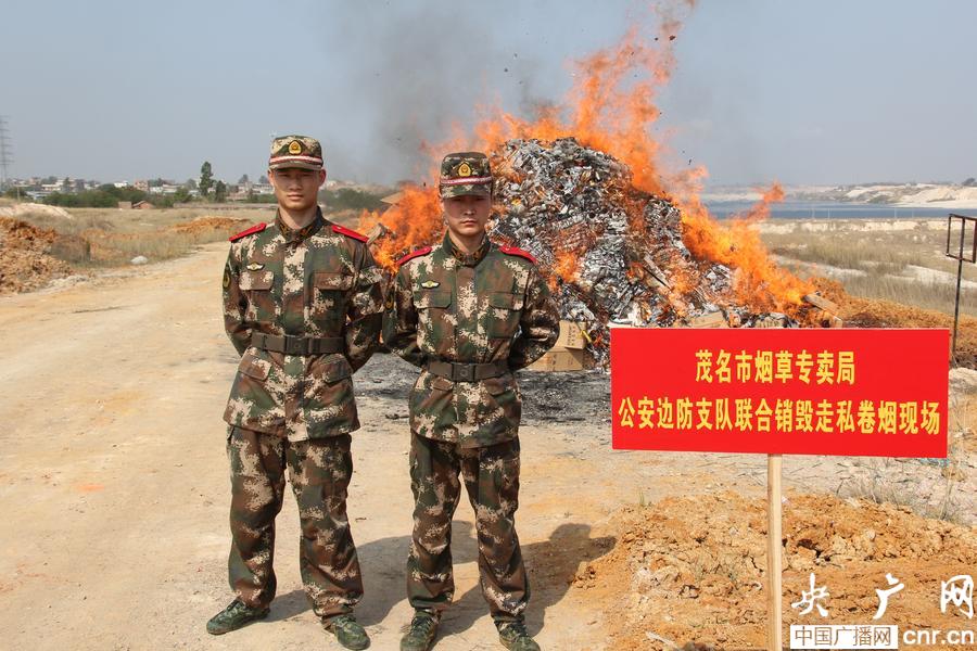 廣東茂名公開銷毀110萬走私香煙(央廣網發 陳小飛 攝)